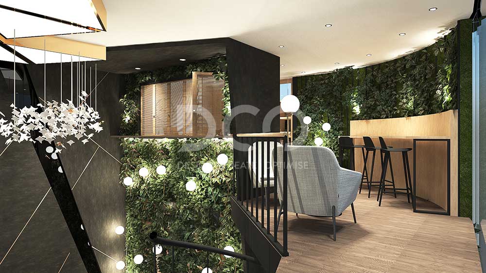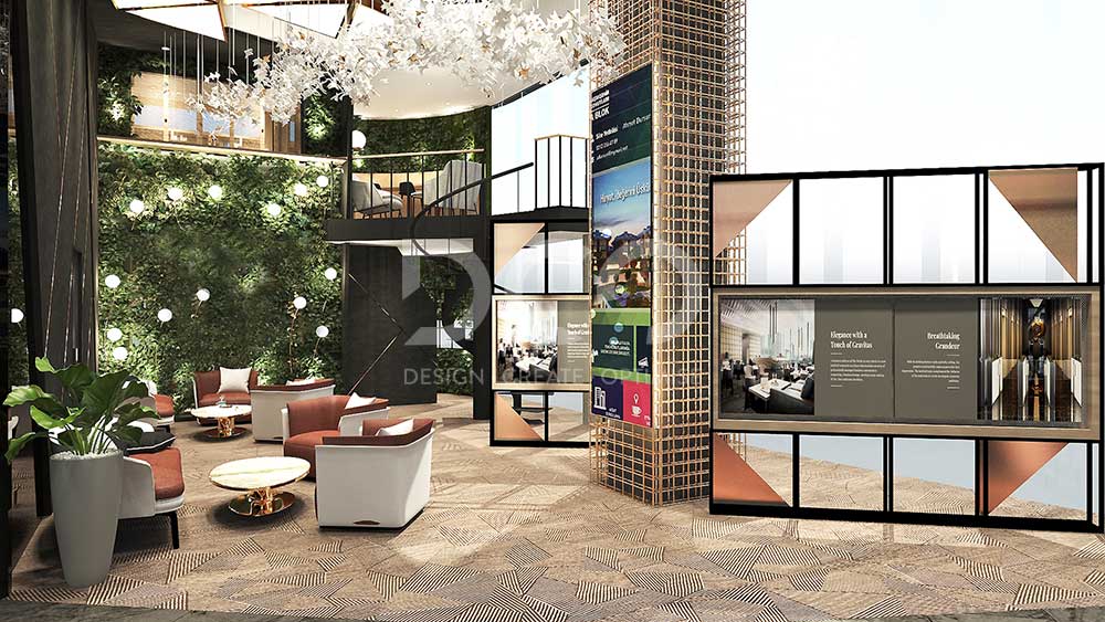 Aiming to provide a sophisticated visitor experience, the space is conceptualized with luxury, high profile materials, with soft cushioned furniture and lots of greeneries to harmonizes and lightens the space ambience.
