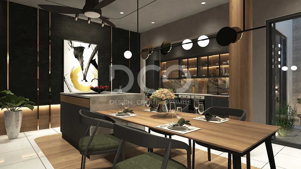 Space infused with modern elements with clean and smooth lines. Capture attention to details, textural panels and the design of furniture that carries both aesthetic and functionality well.