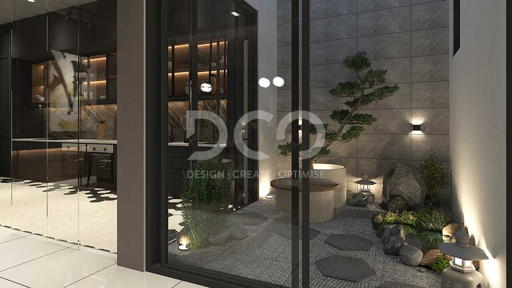 A sophisticated living style portrayed through the space with the use of high profile materials, subtle textural panels, and indirect lighting to showcase the identity of the owner living through the journey of this expansive space.
